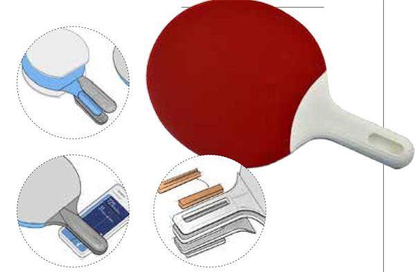这款概念乒乓球拍改变了传统球拍的核心构成,使其更加灵活、符合人体工程学的特性。该设计可以根据玩家的需要安装不同类型拍面、手柄,在手柄中引入新元素,其中可拆卸拉环提供所需的重量,匹配球员的抓握或打球风格。它同时也是一个追踪器,可以收集玩家的挥拍数据,并发送到配对的手机进行分析。这样,球拍本身就可以成为一种有效的训练工具。虽然此款概念球拍很难被国际体育组织采用,但它也表明,即使是最简单的改变也可以带来巨大的好处,特别是让人们的思维跳出固有的约束。