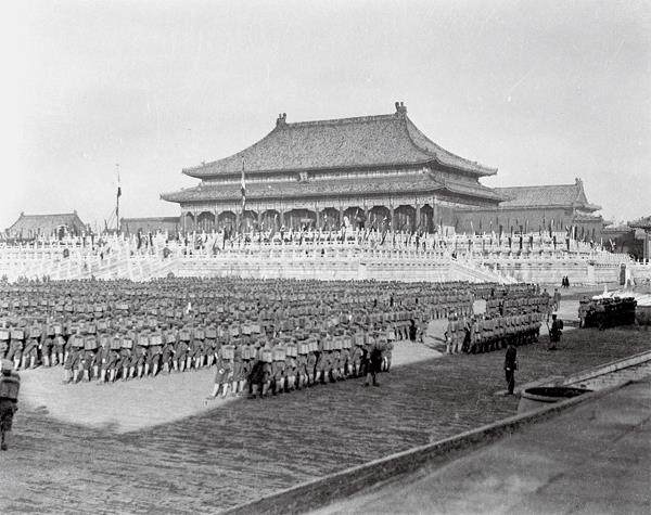 太和殿大阅兵。1918年11月28日,为庆祝中国参与的第一次世界大战的胜利,北洋政府在紫禁城举行胜利庆典,当时北洋军队在太和殿前接受检阅。这是紫禁城数百年历史上唯一一次的大阅兵。