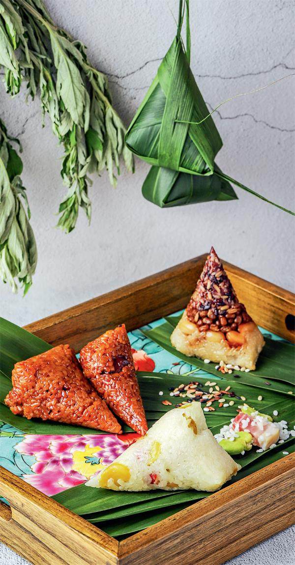 今番的三款粽子,鲜肉粽中加的藤椒油逼出了肉的鲜与香 ;咸肉豆瓣粽的咸香酥鲜在唇齿间流连最久 ;而最为惊艳的无疑是五谷杂粮粽了—— 6种原料自杂粮始、至糯米收尾地逐一放入,待打开粽叶食用时,方会有美丽清晰的层次呈现。被艺术化的、深与浅的对比色浸染心绪,沉醉于这个有粽香的日子,沉醉于粽香带来的深深愉悦之中……