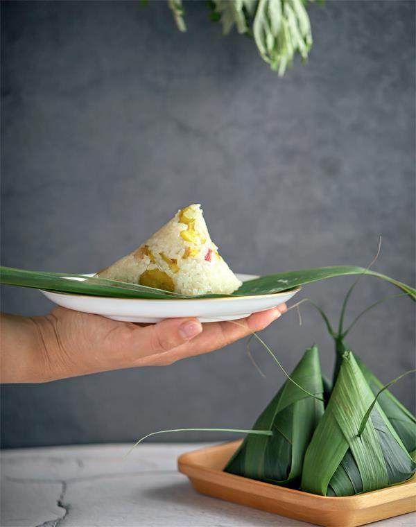 包粽子亦是需要灵活的。因粽叶宽度、长度的差异,需要因势利导,及时微调手势 ;按师傅的说法,粽子的品种不同,手势的松紧度也是不一样的,比如包赤豆粽时手势要略松,让糯米与赤豆在煮的过程中有膨胀的空间,否则会影响到成品的软糯。