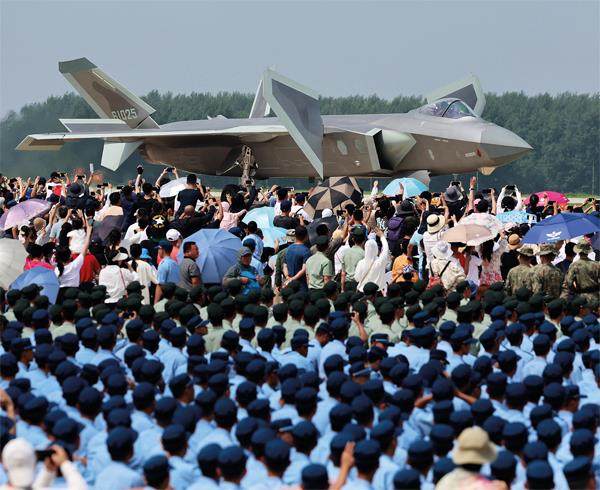 7月23日,吉林长春市,长春航空展举办媒体见面会,歼-20受到观众热烈追捧。