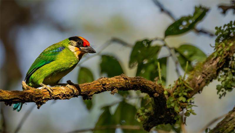 雨后的高黎贡山,湿漉漉的空气里万物都在苏醒。一只金喉拟啄木鸟跳上了枝头,准备开始一天的觅食,它鲜艳的羽毛犹如一道光,照亮了热带雨林。拍摄这张照片使用了佳能EOSR5相机,为了不打扰到被摄主体,摄影师徐可意开启了相机的静音拍摄功能,利用长焦镜头在远处轻松捕捉到这个画面,同时将对大自然的影响降到了最低。