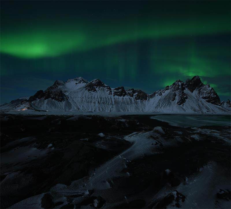 冬季的冰岛总是被风暴笼罩,在为期一周多的旅程里,摄影师纪昌元遭遇了10年来最大的一次风暴,车窗前的风景都变成纯白色,看不到一点公路上的引导线。但经历过风暴后,往往会迎来最纯净的夜空,也是拍照的最佳时机。