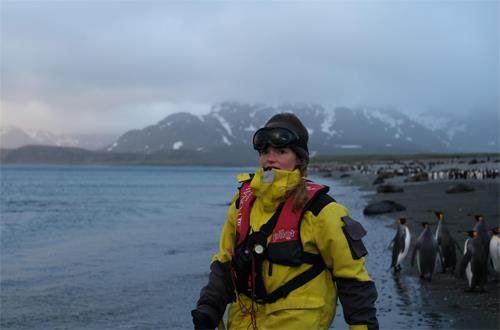 在南极期间,探险队长雪莉总是面带微笑,带领团队提前勘测每一次要登陆的目的地。等到冲锋艇快抵达岸边时,就看到她早早在岸边等待的身影。她总是站在深而冰冷的海水中,确保每个人都顺利登陆,接着又在忙碌地整理好装备,带着所有人按照她勘测好的线路行进。雪莉严肃且严谨,又随时会报以微笑。等到晚宴时候,她忽然又像变了一个人,穿着精致的礼服和高跟鞋,戴起可爱的首饰,像是刚刚结束的法国的一场电影节红毯,看到雷涛,会热情地问起他今天怎么样,还会聊她今天在船上吃到的美味食物。