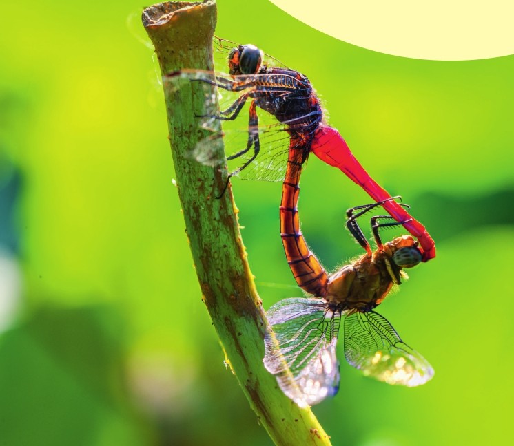 “蛱蝶怜红药,蜻蜓爱碧浔。”蝴蝶喜欢鲜花,而蜻蜓更爱绿水。炎热的夏日,在稻田、溪流、池塘、水库、湖泊的上空,飞舞着英俊帅气的绿色碧伟蜓、活力四射的蓝色乐仙蜻蜓、衣着光鲜的紫红蜻蜓……它们不仅在这里捕食、嬉戏,更在这里谈情说爱、生儿育女。