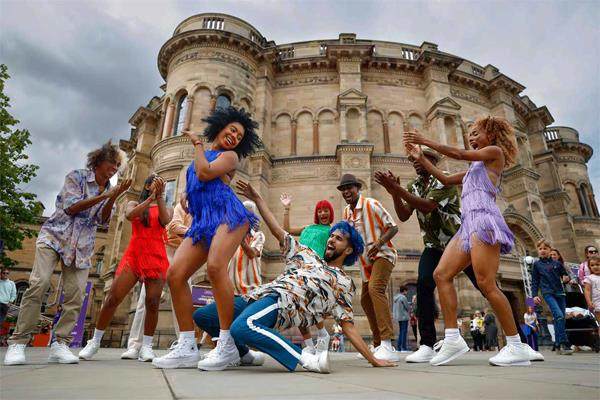 当地时间2023年8月7日,英国爱丁堡,来自古巴舞蹈团的舞者参加8月5日至27日在爱丁堡举行的哈瓦那街头派对。