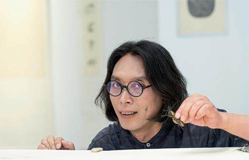 有时,他在书坊作画,虫子多次打扰,“啪,一只从电脑鼠标前面爬过去”,一转头,又是一只小虫在偷吃颜料。他开始觉得烦闷,但看到虫子跳到纸上沾染了未干的墨迹,四处爬行反而成就了一幅独一无二的“水墨画”,便又欣喜起来。