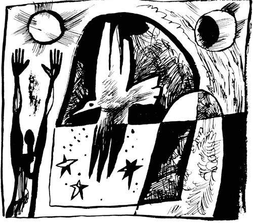 “老鹰,老鹰,银色的老鹰。”我在心中默念,并喃喃自语,像是看到了梦中才有的奇异景象。只有神圣的老鹰,才可能飞越这些巨大山峦组成的屏障;只有神圣的老鹰,才可能如此一往无前地自在飞翔。