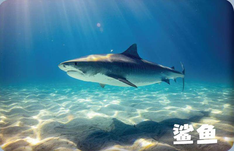 鲨鱼是海洋中强大的肉食性鱼类,它们已经存在了上亿年,身体圆滑呈流线型,感觉十分灵敏,是一群游速快的中大型海洋鱼类。鲨鱼表皮覆盖着尖锐的鳞片。这些鳞片有V 形皱褶,这大大减小了水流的摩擦力,让鲨鱼身体周围的水流更高效地流过,帮助鲨鱼快速游动。