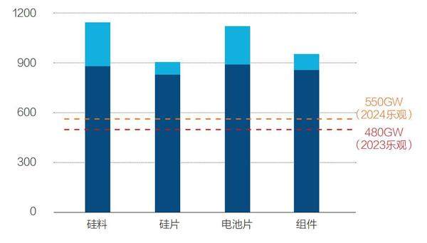 图1:光伏产业链各环节2023年末全球产能及组件需求预
