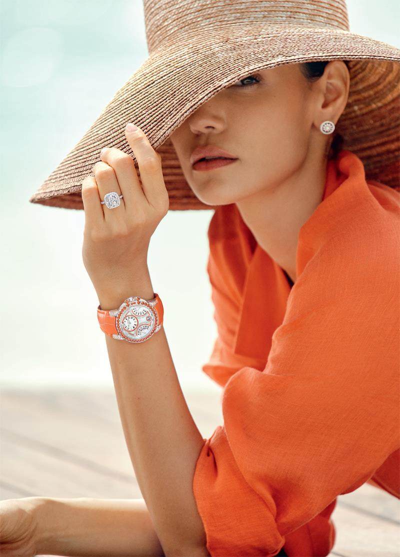 海瑞温斯顿 海洋Ocean系列双逆跳功能36毫米自动腕表 Winston Gates铂金钻石耳环 The One枕形切工订婚钻戒