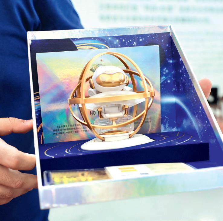 北京工美集团作为服贸会的合作供应商、特许经营商,积极开发服贸会主题特许商品,除与会嘉宾统一佩戴的官方纪念徽章和发放携带的口罩之外,更是完成了扇子、帆布包、充电宝、陶瓷赏盘等服贸会特许商品的设计制作。