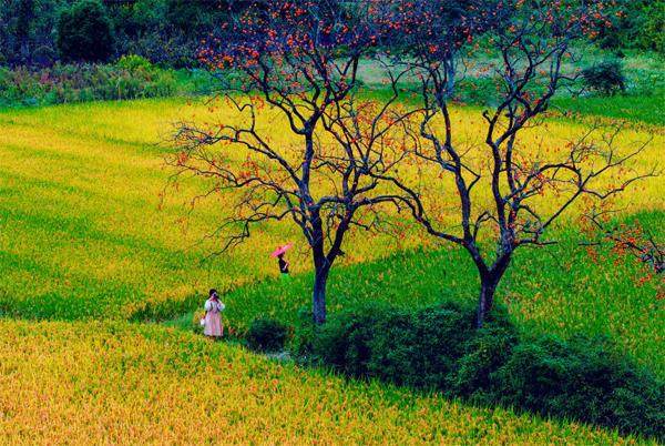 2023年10月6日,浙江省绍兴市诸暨市枫桥镇王村的柿子红了,吸引众多游客前往拍照留影。红红的果实挂满枝头,成为秋日里一道亮丽风景。