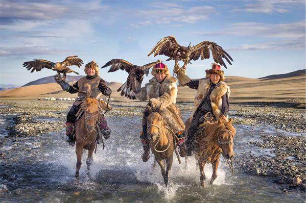 拍攝于蒙古国,照片展示了哈萨克鹰猎人和鹰之间的亲密关系,这些鹰被视为他们家庭的一员。在长达200年时间里,哈萨克人骑在马背上,用训练有素的猎鹰狩猎。这些猎鹰在很小的时候被从巢中带回猎人家,开始长达10余年的陪伴,之后,它们将被放回野外度过余生。