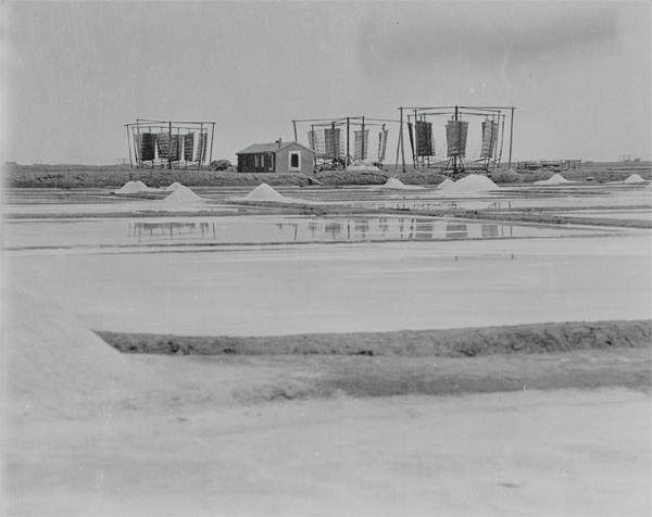 大沽盐场,地处天津东部临近渤海湾,此地自南宋时期建立丰财场,置灶煎盐。清代改成挖沟筑池,引海水晒盐并设计制作了有多面风帆的风力原动机——“八卦帆”。此风帆可以控制高度,调节转速,抽取海水注入盐田,经过蒸发结晶形成海盐,是当时盐田主要的生产设备之一。