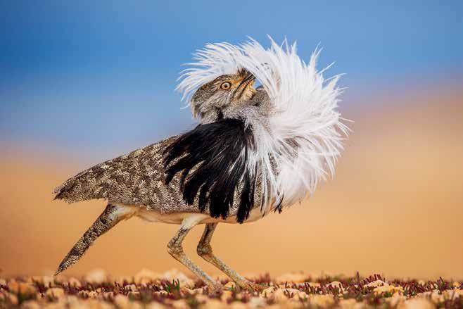 何塞·胡安·埃尔南德斯·马丁内斯是一位专门从事野生动物摄影的视觉艺术家。他对西班牙加那利群岛的自然环境有着深刻了解,再加上实际有效的技术和多年的经验,这些都帮助他抓拍到了许多物种独特的行为瞬间。2022 年,这位摄影师在西班牙富埃特文图拉岛大鸨进行交配的地方,拍到了一只优雅的加那利波斑鸨,它的颈部羽毛向外突出。这张照片获得了英国伦敦自然历史博物馆颁发的“2022 年度野生动物摄影师”奖。其实在获奖之前,他的作品就已经赢得了广泛关注。他的摄影作品曾多次刊登在各种出版物上,包括《国家地理》(National Geographic)和《地理》(Geo)等杂志,《西班牙自然》(The Nature of Spain)和《加那利动物》(Fauna Canaria)等书籍,以及着名的百科全书《世界鸟类手册》(Handbookof the Birds of the World)。近年来,埃尔南德斯的作品在各种摄影比赛中获得认可,比如西班牙国际自然摄影大赛(Montphoto)、德国自然摄影协会举办的摄影比赛(GDT)、意大利野生动物摄影师协会举办的摄影比赛(Asferico)、英国皇家摄影协会举办的比赛等。