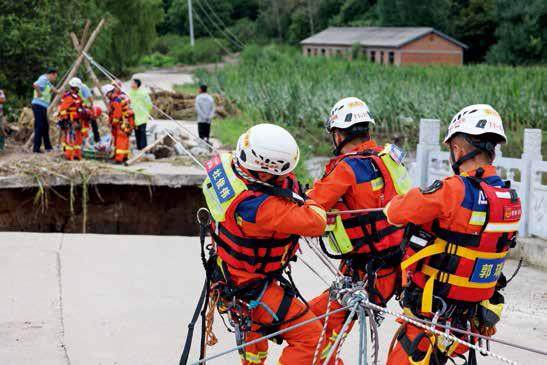 在不断挺进灾区深处的路上,我目睹了消防救援人员在断桥之上架起“生命之索”,解救新开村最后一名受困人员曲凤霞的全过程。桥梁坍塌,道路受阻,到处都是被洪水冲过的淤泥与碎石,消防车无法开进受困地带。我与14 名消防队员只能靠步行进入。