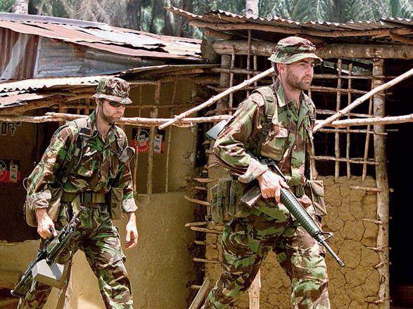 当英国陆军开始装备5.56mm口径的L85A1 时,英军的特种部队则在使用加拿大生产的C7 步枪,可能还同时购买了美国生产的M16A2E3 出口型。因为2000 年SAS 在塞拉利昂营救被当地军阀武装“西部小子”劫持的英军维和部队士兵的“毛松香行动”中,就被发现部分SAS 士兵手上的M16 步枪并非C7 上机匣,而是A2 上机匣。