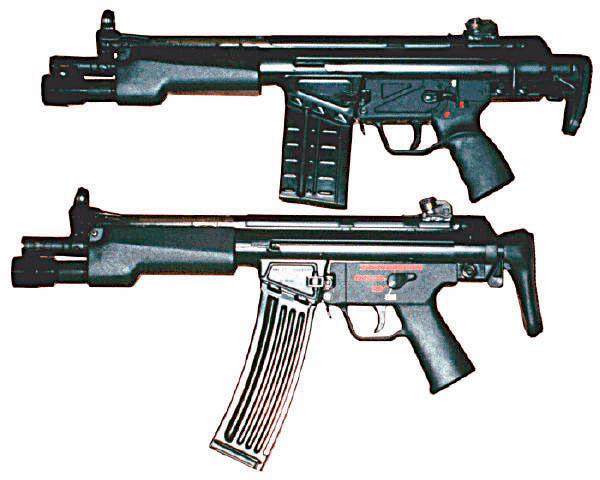 后来根据SAS 的需求,英国一家名为FR 国际军械有限公司的小公司为SAS 改造了一种更短的G3步枪,并命名为MC51。该公司的枪匠比尔·弗莱明把G3KA4 步枪的枪管缩短至230mm, 只比MP5冲锋枪的枪管长5mm,相比之下,G3 的枪管长450mm,而G3K 的枪管长也有315mm。由于枪管短,需要更短的护手,所以直接就安装上MP5 冲锋枪的护手。经过改装,一支只比MP5 略长但发射全威力步枪弹的“冲锋枪”就诞生了。