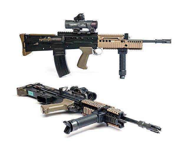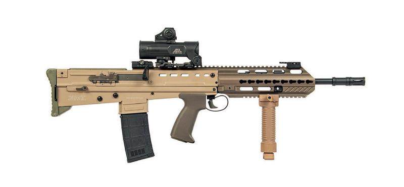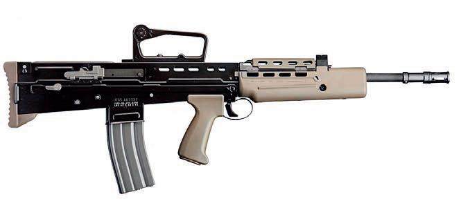 注意, 上述文件的原文是“SA80” 而非“L85”, 在SA80 枪族中,除了L85 系列步枪外,还有L22 系列卡宾枪、L86 系列轻机枪和L98 系列训练枪(发射.22 LR 弹,用于军校学员训练)。但L22 系列和L86 系列的装备数量极少,尤其是后者,正逐步被L110 系列轻机枪(英军装备的FN Minimi)和L129 精确步枪取代。需要说明的是,L86 虽然是轻机枪,但实际上英军步兵班中同时装备1 挺L110 和1 挺L86,后者同时兼任轻机枪及精确步枪的角色。