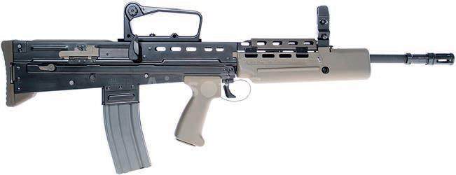 SA80 系列步枪是英国军方现役5.56×45mm 北约标准口径突击步枪,最初由位于恩菲尔德洛克(Enfield Lock)的皇家轻武器工厂生产,取代了原本的L1A1 半自动步枪(英国产FAL)。