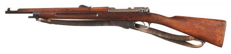 看到其他兵种纷纷列装“量身定做”的卡宾枪,自行车步兵也不甘落后。自行车步兵发现M.95 步枪过长,而骑兵的旧型1 号卡宾枪虽然短小轻便,适合背负携行,但无法装刺刀进行肉搏。1909 年,一种融合旧型1 号和3 号特征的卡宾枪被自行车步兵采用,命名为“旧型4号卡宾枪”。该枪于1918 年被新型4号卡宾枪取代,总产量约1.8 万支。