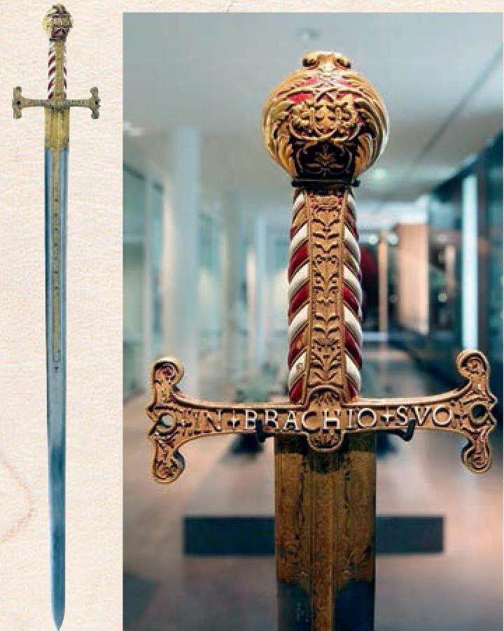 1585 年,阿尔达纳上校的儿子将该剑献给哈布斯堡王朝的西班牙国王腓力二世,以此换取一笔养老金。此后,这把剑被存放于马德里皇家军事博物馆。1808 年“半岛战争”爆发后,法国军队占领了西班牙,皇家军事博物馆的藏品也遭到法军洗劫,法军元帅若阿尚·缪拉(JoachimMurat)根据拿破仑一世的命令將这把剑带回法国,存放于杜伊勒里宫的展柜中,直至1815 年。