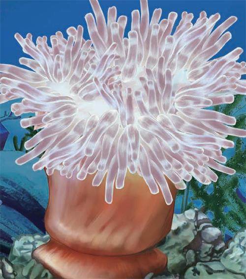 2. 海葵没有骨骼,喜欢把身体固定在海底的岩石和珊瑚上,它可以移动,但是速度很缓慢。