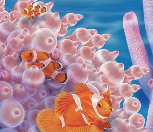 小丑鱼身体表面有特殊的黏液,可保护它们不受海葵的伤害。小丑鱼在海葵的触手间自由出入,海葵就是它们的家。当被其他鱼攻击时,小丑鱼就会立刻躲进海葵的触手里寻求保护,毕竟海葵是有毒的。而那些鱼往往会成为海葵的食物。不过,海葵也是有天敌的,有些品种的鱼专门以海葵为食,比如鲽鱼。这时,小丑鱼就会为了保护海葵不受伤害,与鲽鱼打上一架。