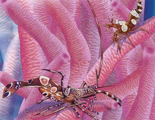 白斑海葵虾也是住在海葵家里的小伙伴,它们的身体是透明的,数个白点不规则地分布在透明的身体上面,这样的身体可以帮助它们很好地隐藏在海葵中间。如果附近没有鱼类出现,白斑海葵虾就会离开海葵,冒险出去寻找食物。