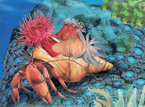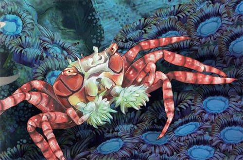 对于总是待在原地不动的海葵来说,寄居蟹是一个非常棒的小伙伴,因为寄居蟹会把它背在背上,一起出发去旅行!