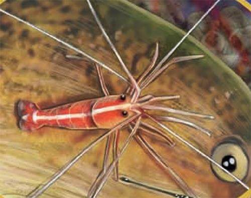 清洁虾非常勤劳,它每天的工作就是为鱼类清除身上的杂物。