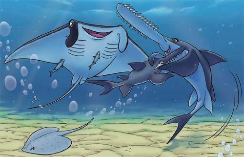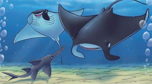 别说找到爸爸了,几乎所有被询问的对象都被小宝的“大锯子”吓跑了。为此,小宝只好偷偷地藏在泥沙中,继续一路询问。终于,功夫不负有心人,它打听到爸爸有可能住在珊瑚礁区域。