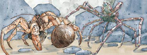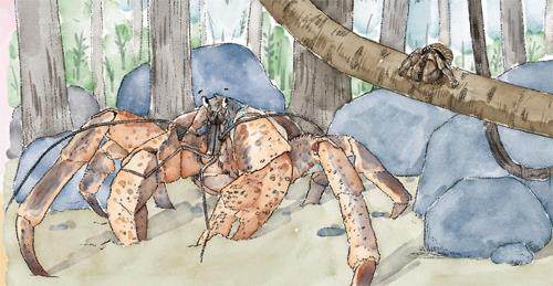 蟹霹雳的另一个朋友蟹银珠说:“霹雳,其实椰金虎也是十足目,只不过它的最后两足作为暗器藏在了蟹壳下面,只有遇到特殊情况时,才会将其伸开。”