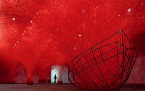 11月6日,参观者在深圳美术馆(新馆)的“盐田千春:颤动的灵魂”展览上观赏艺术家盐田千春的艺术作品。当日,深圳美术馆(新馆)正式开馆。新华社记者毛思倩摄