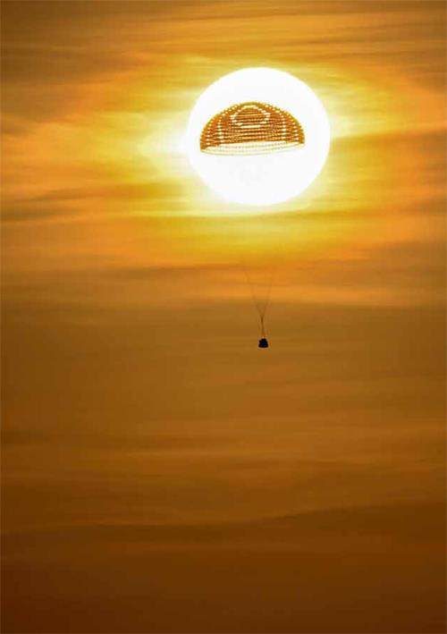 10月31日,神舟十六号载人飞船返回舱在东风着陆场成功着陆。新华社记者连振摄