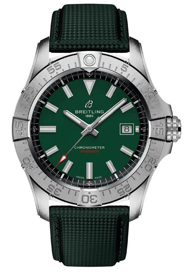 这款设计均衡的腕表直径仅为42毫米,但同样具备大尺寸腕表的坚固性。复仇者自动机械腕表采用精钢制作而成,可选择黑色、海军蓝或迷彩绿表盘,并可搭配同色系军队风皮革表带或三排式精钢表链。该表款搭载经瑞士官方天文台(COSC)认证的百年灵17自动三针机芯,可提供约38小时的动力储存,并享有两年质保。
