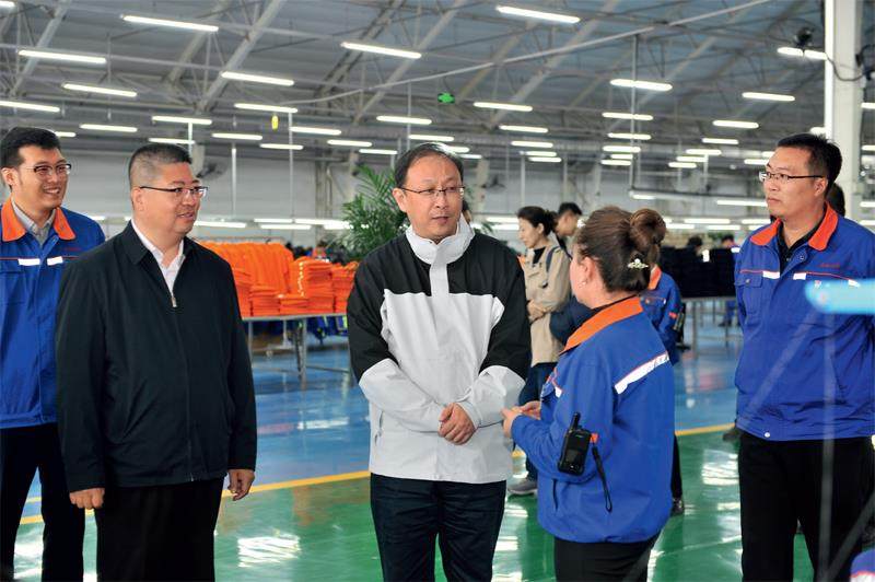 在服装车间、涂层车间及产品展区,顾伟达详细了解公司整体概况、生产经营状况、销售收入情况,就如何进一步做好产业援疆、推动新材料制造核心技术攻关,提升产业链供应链稳定性和竞争力等方面提出要求。他指出,要以党建促文化建设,进一步加强宣传思想阵地建设,切实担负起引领职工听党话、跟党走的政治责任;要紧跟国家发展战略产业布局,研究企业定位,不断完善组织体系,筑牢稳定发展的基石;要以科技创新为引领,结合自身资源禀赋,加大研发投入力度,在新业态新模式上下功夫;要不断完善合规体系建设,建立与产业链上下游企业的联盟协作模式,实现产业高质量发展,立足新疆辐射中亚,努力发展成为标杆企业、龙头企业。