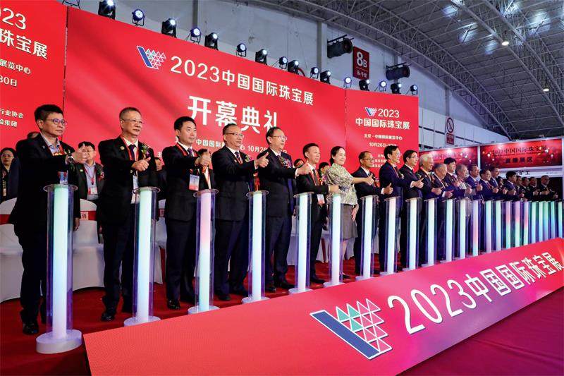 中宝协功勋会长宋瑞祥,中宝协原会长徐德明,中宝协功勋会长陈洲其,中国国际贸易促进委员会原副会长董松根,中宝协会长叶志斌,珠宝国检党委书记、董事长王宝民,中国黄金协会会长、中国黄金集团有限公司党委书记、董事长卢进,中宝协副会长、秘书长毕立君,北京时尚控股有限责任公司(以下简称“北京时尚控股”)党委书记、董事长顾伟达,北京时尚控股党委常委、副总经理、北京工美集团党委书记、董事长段体玉等相关领导出席开幕式。
