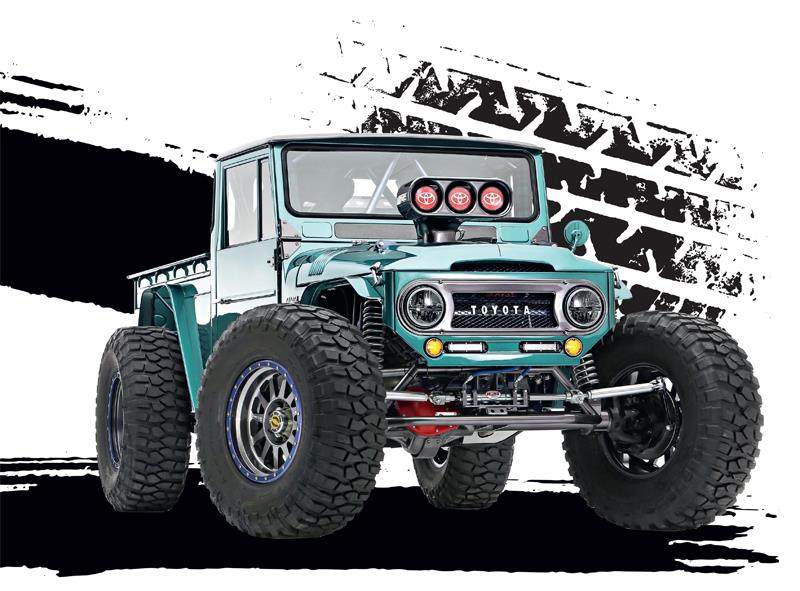 在本届SE MA展会上,丰田带来了一款堪称终极改装的FJ Bruiser车型,以纪念1966年诞生的F J45皮卡车型。从凶猛的外形不难看出,这台FJ Bruiser绝对是个狠角色,在其看似复古的造型下,藏着一台5.9L纳斯卡车赛规格的V8赛车发动机,最大功率超过530kW,并且配备了专为赛车打造的三挡RanchoDrivetrain Engineering自动变速器和Magna Flow排气系统,最高车速可达265km/h。