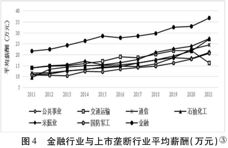 金融行业的高收入问题一直是社会关注的焦点问题。据Wind数据统计,某国有控股上市金融公司2021年度员工平均薪酬达98.3万元,是2021年全国城镇非私营单位就业人员平均工资10.68万元的9.20倍,其中收入最高的高管薪酬已经超过900万,是2021年全国职工平均工资的90多倍。某非国有金融公司2021年度平均薪酬超过174.41万元,连续多年稳居A股上市公司薪酬排行榜首。① 金融业人均薪酬是其他行业的3—5倍。近些年来,社会舆论持续对金融行业高薪有批评和担忧。一些研究者认为金融行业并不创造价值,而是同物质资本一起协助劳动力创造价值,金融资本参与剩余价值的分享或分配,有其合理界限。②国外学者研究发现,金融租金可以解释美国金融业员工相对收入差异的50%,金融业企业高管能够获得高达250%的超额薪酬。③我国学者研究发现,中国居民收入差距的20%是由地区和行业引起的,其中行业对收入差距的影响更大。① 而在众多影响行业间收入差距的因素中,垄断因素被认为是行业收入差距的主要因素。② 尽管一定收入差距会产生激励效应,但目前我国金融企业的薪酬激励并非十分有效。
