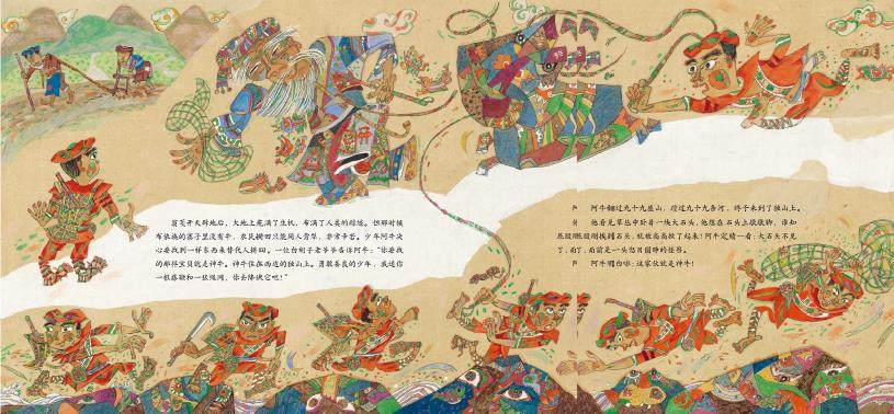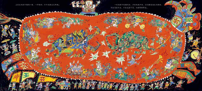 20世纪80年代的时候,湖南少年儿童出版社的陈士平老师策划做一套少数民族故事书,《牛王节》就是其中的一本。陈士平不仅是这套书的总编辑,也是《牛王节》的文字作者,蔡皋是《牛王节》的责任编辑。我们就在楼上楼下办公,蔡皋跟我也是蛮好的朋友,于是她就找到我,让我来完成这本书的绘画部分。