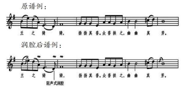 歌唱的动人之处,不仅在于音色的优美,还要注重情感表达和韵味把握。在烹调菜肴(二度创作)时,润腔这道“调味品”[22]不能少。能够准确地表达思想内容和人物情感是歌唱艺术的最终目的,是有个性、有魅力、有韵味、具有时代心声的歌唱者必须具备的能力。一首歌曲,只有理解它、感悟它才能到位地表现它。