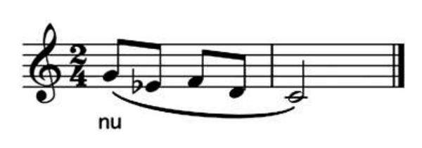 基诺·贝基曾说:“在哪里哼就在哪里唱。”[5]哼鸣是塑造“好”音色的前提。练声时使用哼鸣热身,可起到保护声带的作用,而带着哼鸣的状态歌唱,可帮助歌唱者体悟“面罩感”和“高位置”。金铁霖教授将哼鸣分为“大哼鸣”和“小哼鸣”,二者的振响位置不同:“‘大哼鸣’要求口腔内部开大些,位置在头部后上方,练习时感觉整个后脑上部分都振响……‘小哼鸣’练习时是在后脑上半部分中心有一个集中的焦点,振响的是一个点的感觉”[6]。王士魁教授在这一教学阶段引导学生使用“哼”在假声位置的“大哼鸣”。