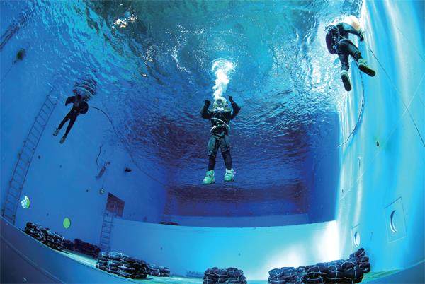 当地时间2023年11月16日,日本广野镇某高中学生在进行潜水训练。该校的海洋开发系为学生学习潜水提供了便利。潜水所使用的装备重约65公斤。