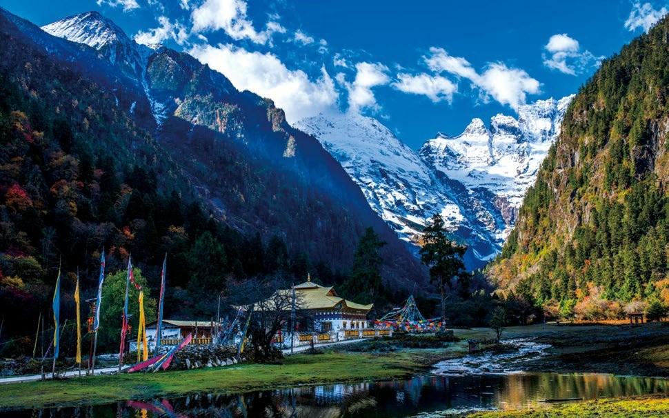心怀畏惧,观察梅里群峰看峡谷两岸炊烟升起