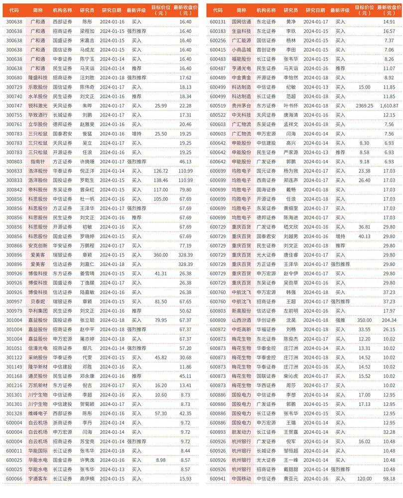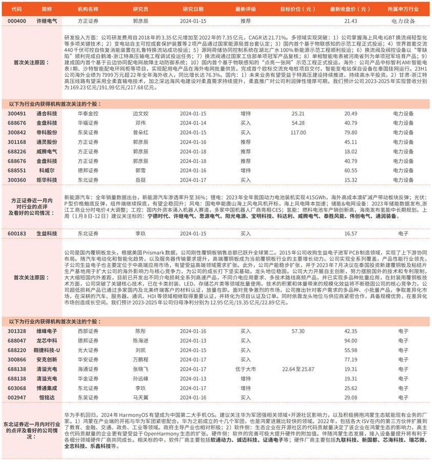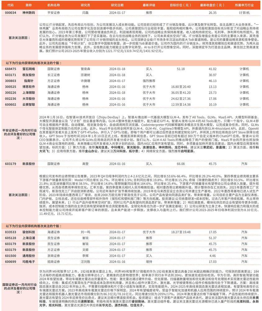 最新機构首次关注个股(注:券商报告时间:2024 年1 月13 日-1 月18 日;已剔除上市未满1 年的次新股)