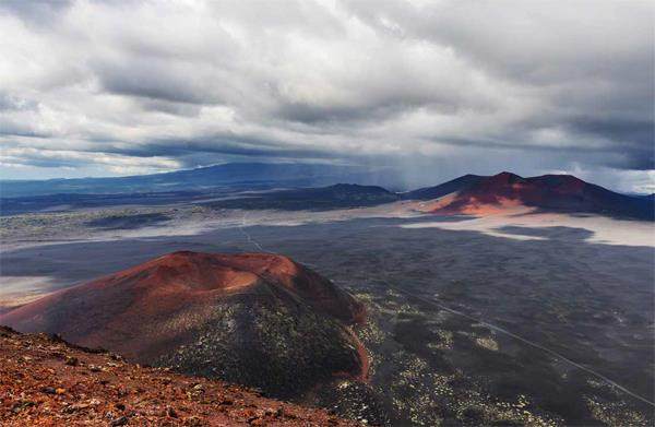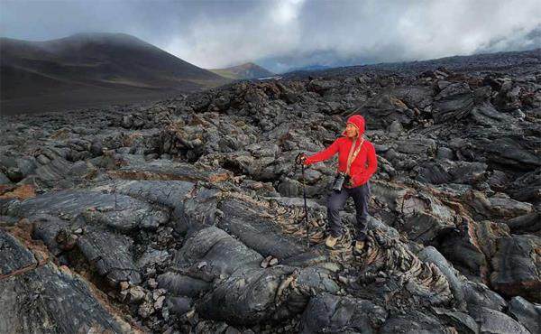 2023年,我再次乘坐卡瑪斯改装重卡进入托尔巴奇克火山区(Tobalchik,简称“霸奇”),全地形车穿梭在茂密的松树与白桦树间,经过刺激的森林越野,我们在下午到达位于熔岩爆发区的露营地。霸奇火山是有史以来世界仅有的六个大裂隙喷发的火山之一,也是迄今人们对喷发研究得最为详尽的三座火山之一。近代,霸奇就有三次大爆发(1941年、1975年、2012年),其中1975年那次是20世纪最剧烈的一次火山爆发,持续喷发长达一年半时间。