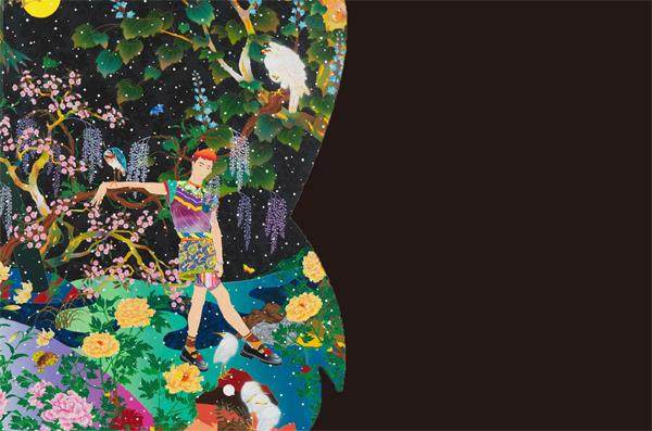 松山智一(出生于1976年)是一位以纽约为活动据点的艺术家,以其充满活力的画作、精湛的线条,以及在SOHO地区创作的巨大壁画而闻名(2019年,纽约,Bowery Mural占地超过120平方米),也创作了很多大规模的公共艺术项目,如《花尾》公共艺术广场(2020年,东京,新宿东口广场),由纪念建筑100周年的户外雕塑展的三维作品《Wheels of Fortune》(2020年,东京明治神宫,“神宫社艺术祝祭”)。他的作品涵盖了各种各样的图像,引用包括来自日本、中国、欧洲等传统绘画的参考资料、时尚杂志的剪贴、现实世界中的消费产品和我们熟悉的日常用品和标志等。