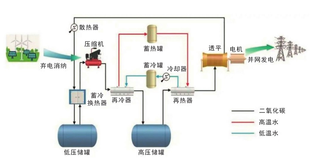 那么,什么是二氧化碳储能呢?所谓二氧化碳储能,是利用二氧化碳作为循环工质进行充放电操作的储能方式。也许有人会问,与压缩空气储能相比,压缩二氧化碳储能有哪些优势呢?